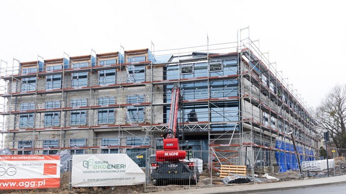 Nowe przedszkole w Nowosolnej pnie się w górę. Kiedy finał budowy? [ZDJĘCIA]