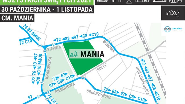 Zmiany w ruchu przy cmentarzu Mania obowiązywać będą od niedzieli 31 października do końca dnia 1 listopada. W weekend Wszystkich Świętych na cmentarz dojechać można specjalnymi liniami MPK Łódź - C8 i C10.
