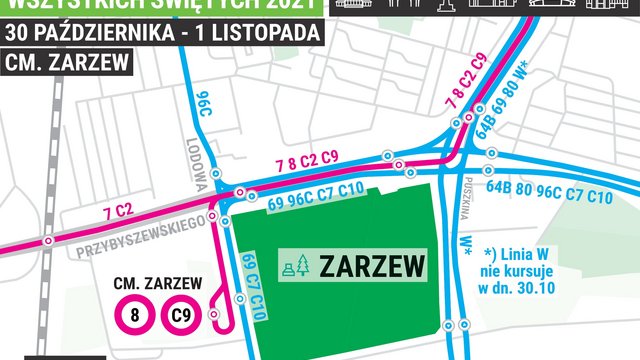 Zmiany w ruchu przy cmentarzu przy Zakładowej obowiązywać będą od niedzieli 31 października do końca dnia 1 listopada. W weekend Wszystkich Świętych na cmentarz dojechać można specjalne linie MPK Łódź - C7 i C10.