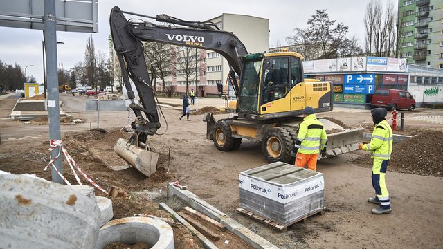 Wykonawca przebudowy ul. Traktorowej czeka z zakończeniem prac na poprawę pogody. Na ulicy brakuje jeszcze nawierzchni, słupków i nowej zieleni.