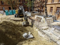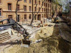 Trwają prace konstrukcyjne związane z budową zbiorników retencyjnych wody deszczowej. Będzie ona wykorzystywana do podlewania trawników i zieleńców. Równolegle robotnicy rozprowadzają instalację do odzyskiwania wody szarej, która po oczyszczeniu i filtracji będzie użyta jako woda do spłukiwania toalet.