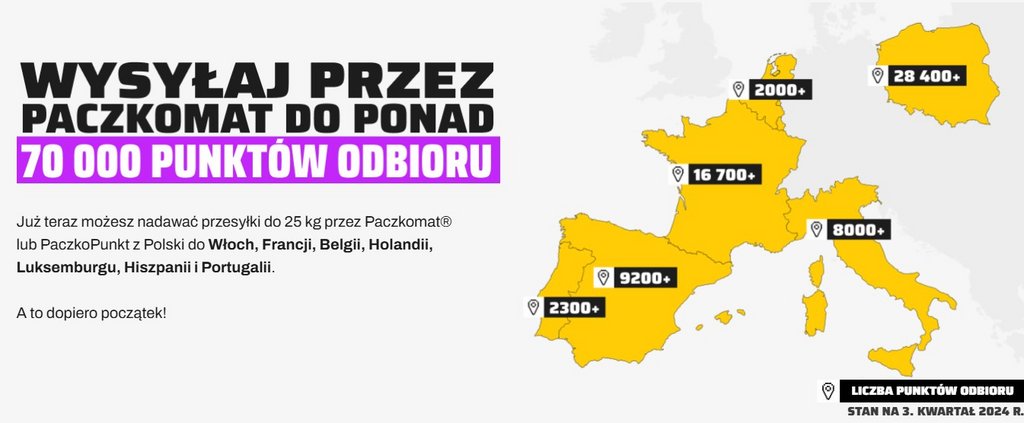 InPost umożliwia wysyłkę paczek z Polski do kilku krajów europejskich, takich jak Belgia, Francja, Hiszpania, Holandia, Luksemburg, Portugalia i Włochy. Dzięki punktom PUDO (Pick Up/Drop Off) oraz maszynom Paczkomat, nadawanie i odbieranie paczek jest wygodne i dostępne o każdej porze.