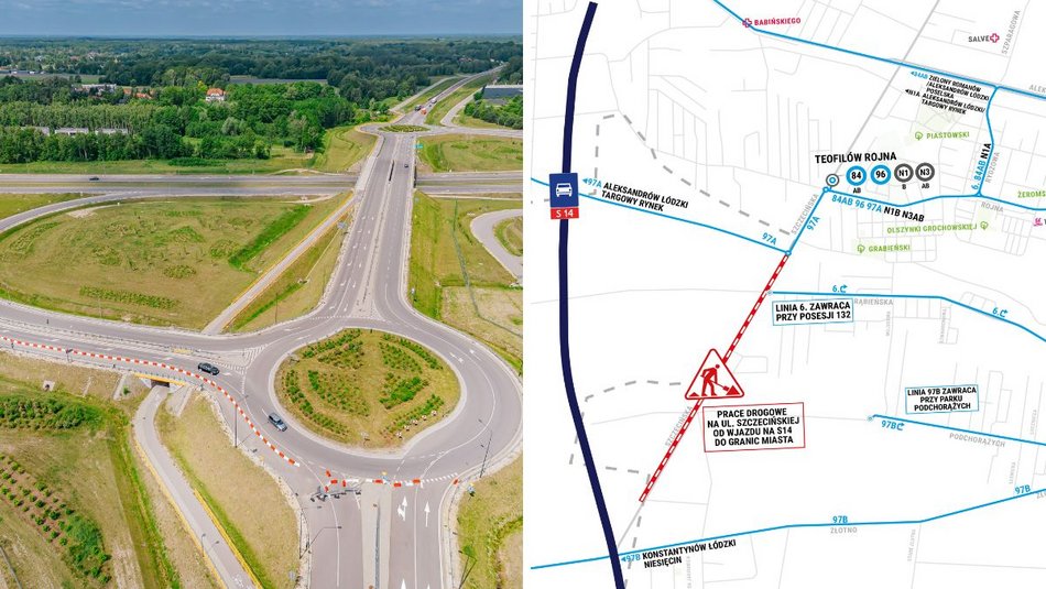 Od niedzieli, 6 lipca otwarta będzie ul. Szczecińska od ul. Aleksandrowskiej do trasy S14. Przejedziemy również ul. Rojną, a na krańcówkę przy ul. Szczecińskiej wrócą autobusy MPK Łódź (linie: 84, 96, N1 i N3).