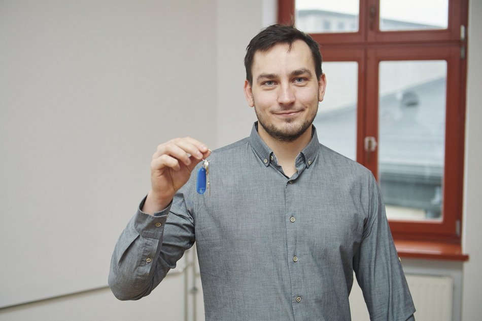 Jarek jest absolwentem Politechniki Łódzkiej i twórcą samochodu na energię słoneczną. Na co dzień pracuje w BSH Home Appliances. Właśnie odebrał klucze do mieszkania w kamienicy przy ul. Legionów, która została gruntownie wyremontowana.