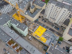 Przy Tuwima 12 w Łodzi zakończono prace przy konstrukcji płyty fundamentowej. Aktualnie trwają tu roboty konstrukcyjne związane ze ścianami parteru. Również na tej działce wykonano przyłącze wodociągowe, co przygotowuje budowę na kolejne, zaawansowane fazy.