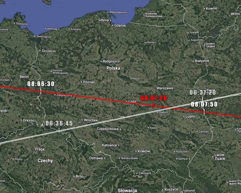 W tym oknie czasowym dojdzie do dwóch przelotów sondy bezpośrednio nad Polską:
