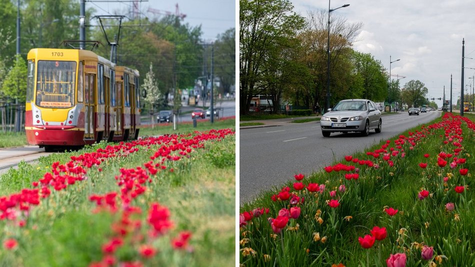 Szpaler tulipanów na Piłsudskiego w Łodzi. Podróż tamtędy to uczta dla oczu [ZDJĘCIA]