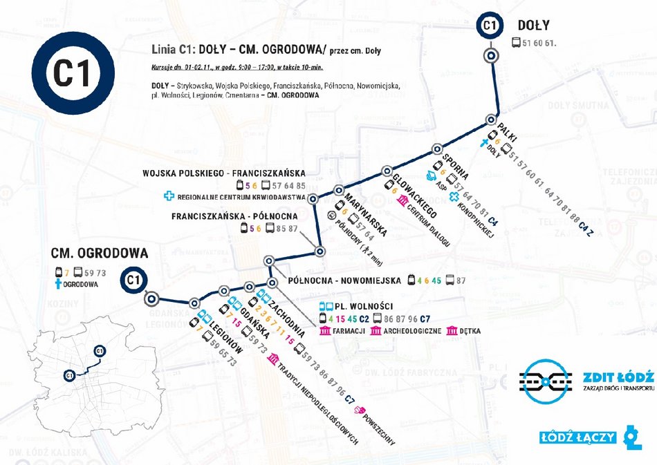 CM. OGRODOWA – Cmentarna, Legionów, pl. Wolności, Nowomiejska, Północna, Franciszkańska, Wojska Polskiego, Strykowska – DOŁY