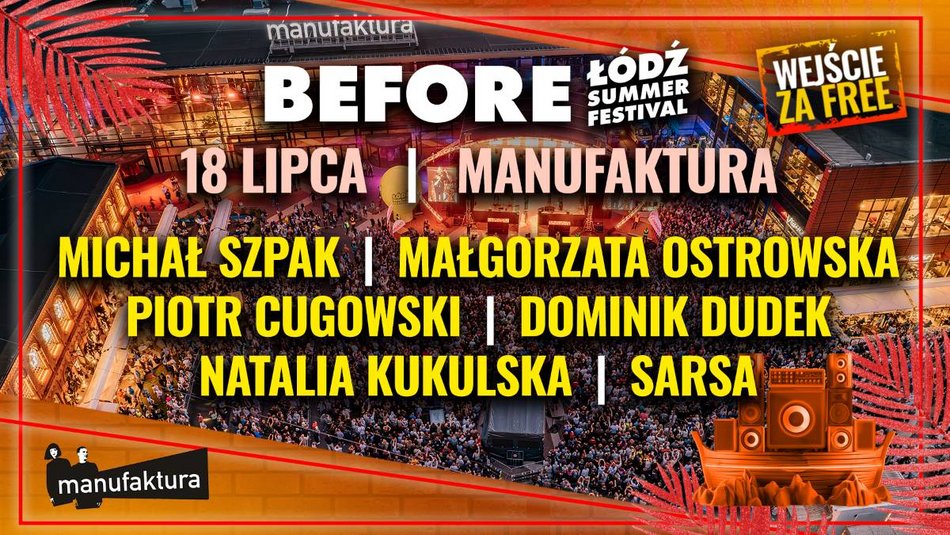 повернутися до статті Міняйте фотографії за допомогою стрілок на клавіатурі 2 / 3 Before party przed Łódź Summer Festival 2025. Gwiazdy polskiej muzyki w Manufakturze! ДИВІТЬСЯ ТАКОЖ Gdzie nad wodę w Łodzi? Arturówek, baseny MOSiR, parki i... rzeki! [PRZEWODNIK] Teatr Powszechny w Łodzi gra dalej. Przenosiny do Hali Expo Łódź na czas remontu Przegląd filmów Jima Jarmuscha w kinie EC1 Łódź. Te produkcje warto poznać