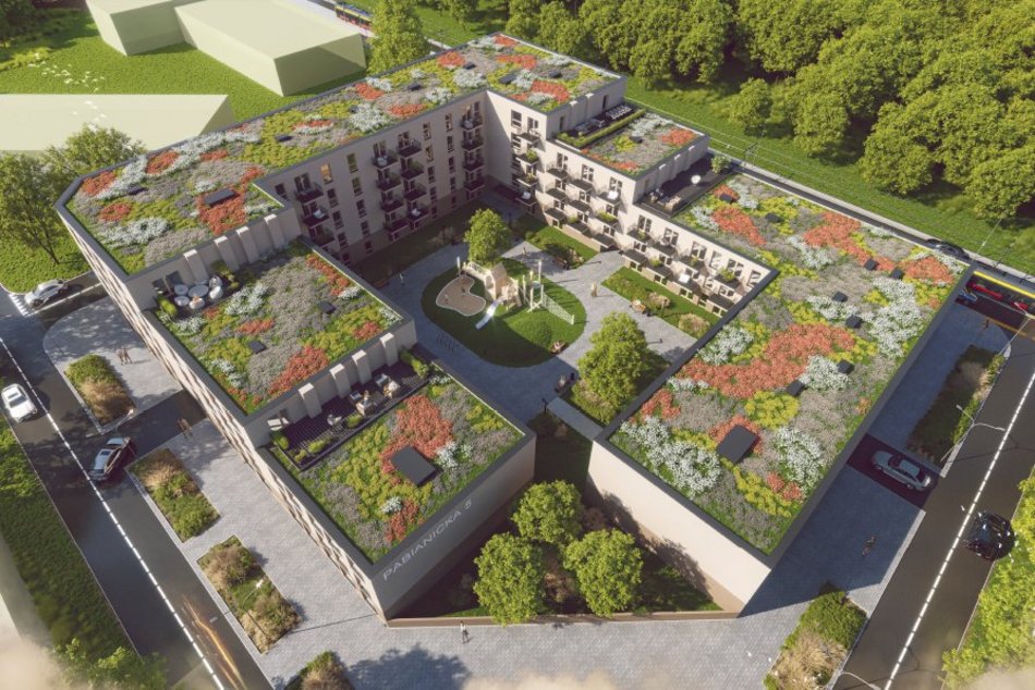 Przy ul. Pabianickiej 5/13 powstaną aż 153 mieszkania, w tym: 48 kawalerek, 76 lokali dwupokojowych i 29 trzypokojowych. Metraże lokali to 26-71 mkw. Na dachu zamontowana zostanie instalacja paneli fotowoltaicznych, dostarczających energię do części wspólnych, a to oznacza oszczędności na rachunkach za prąd.